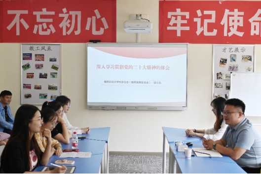 党委副书记韩立新,联系本支部的党员处级干部、校友总会办公室副主任邵士昌,英语研究生党支部书记卫婷曼及支部全体党员参加学习活动。集中学习会由卫婷曼主持。