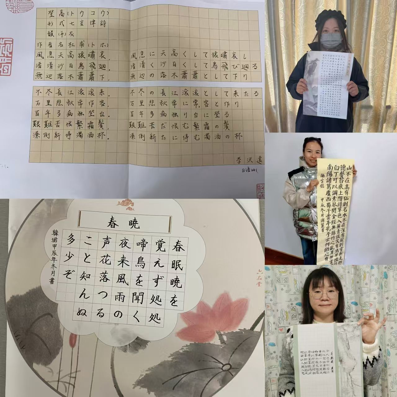 11月中旬,日语系教师党支部前往颜真卿碑林参观学习,组织了一次意义非凡的文化之旅。参观归来后,党支部内部自发成立了书法学习小组,经过20余日的刻苦练习,党支部举办了一场以中华诗词佳篇为主题的书法展示交流活动,从古诗词和传统美文佳篇的视角体验中华传统文化情怀。