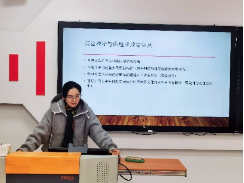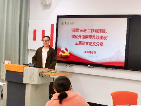 活动第二阶段由包蕾老师代表“英汉互译” 课程组、顾明生老师代表“综合英语”课程组、陈丽颖老师代表“高级英语”课程组展示“习近平新时代中国特色社会主义思想‘进课堂’”的具体教学实践,并由霍雨佳老师分享成人漫画