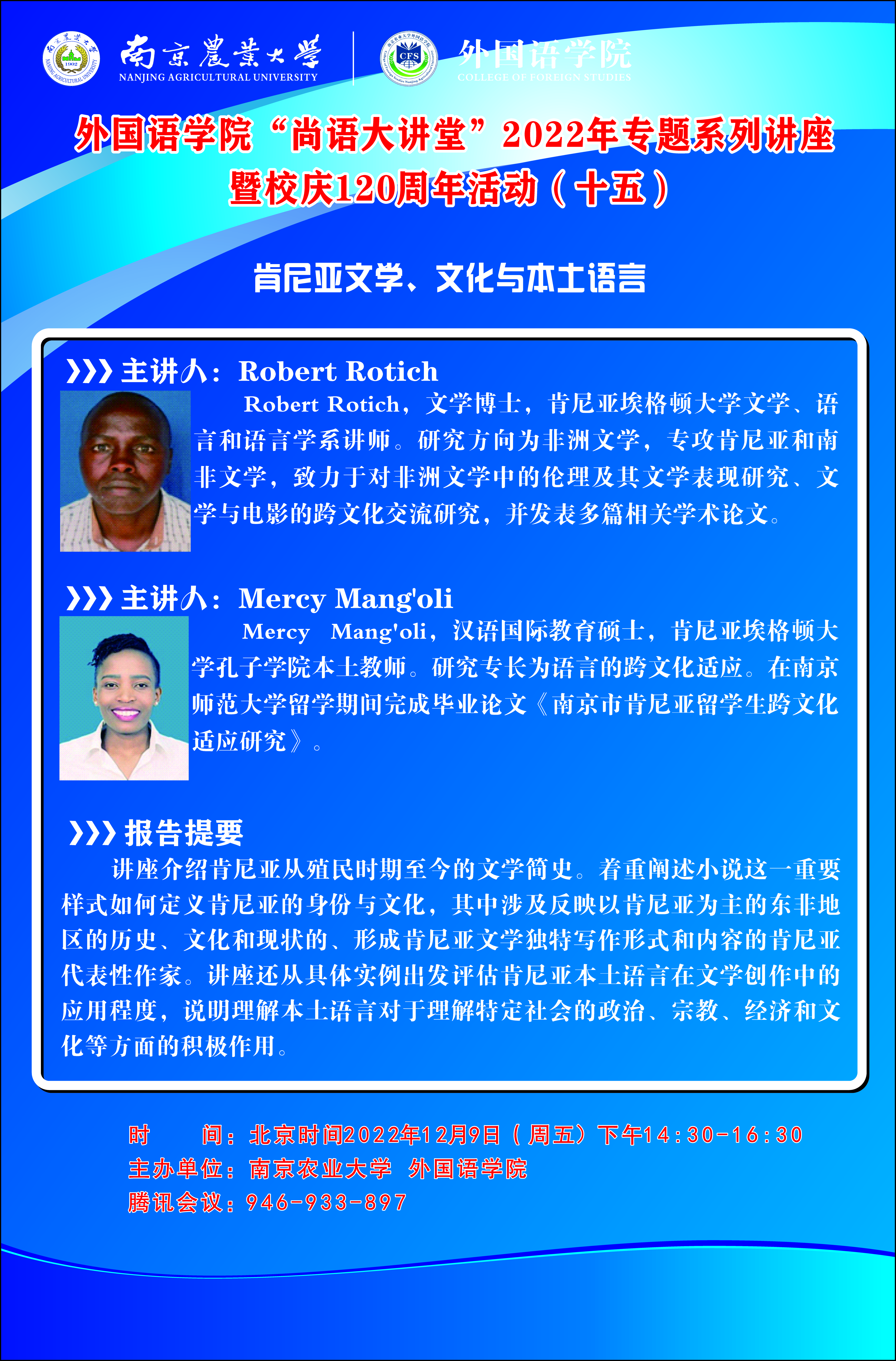 讲座题目:肯尼亚文学、文化与本土语言