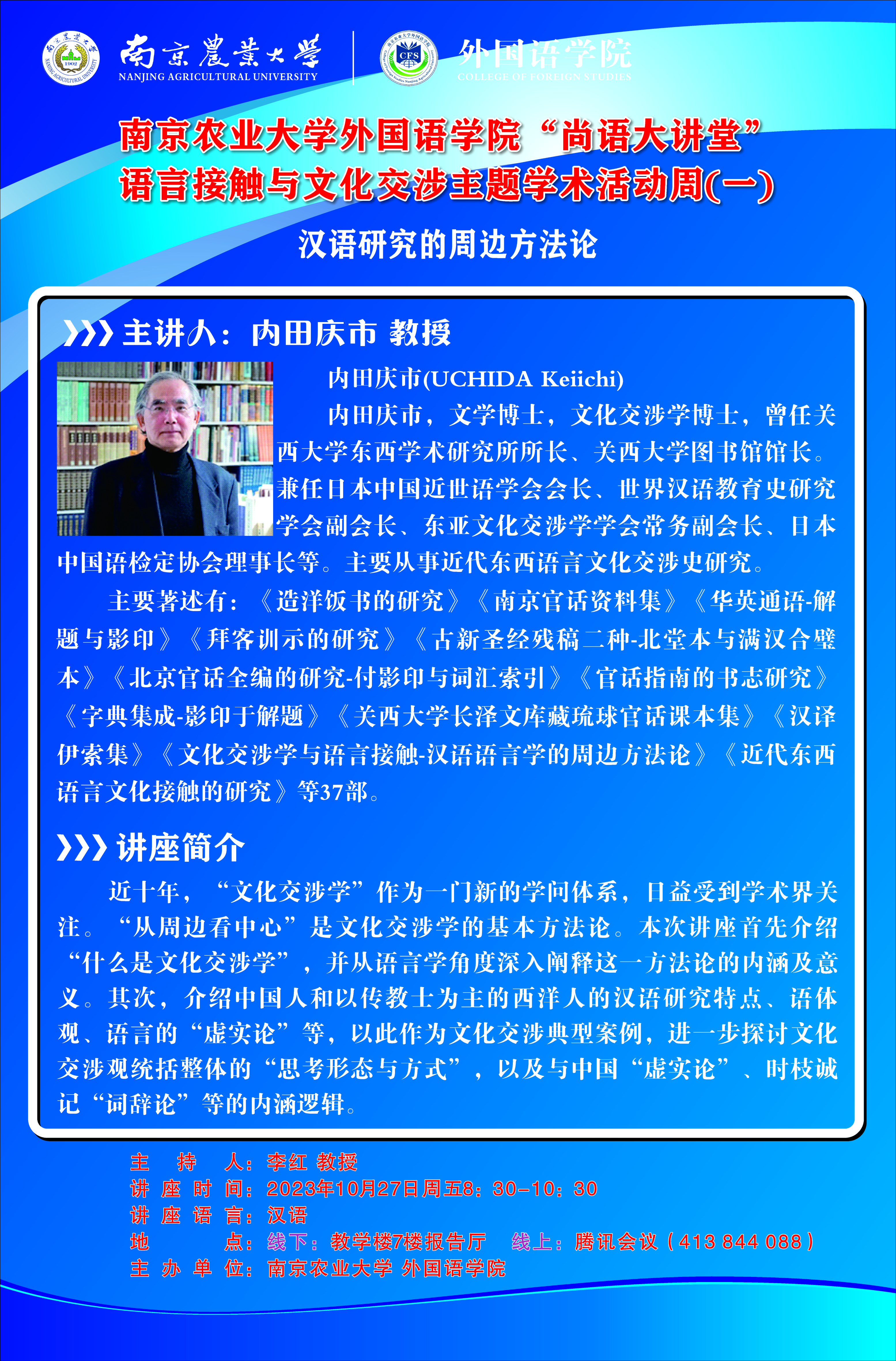 上一篇:讲座|近代西洋人汉语研究的定位和可能性——以“官话”研究为中心