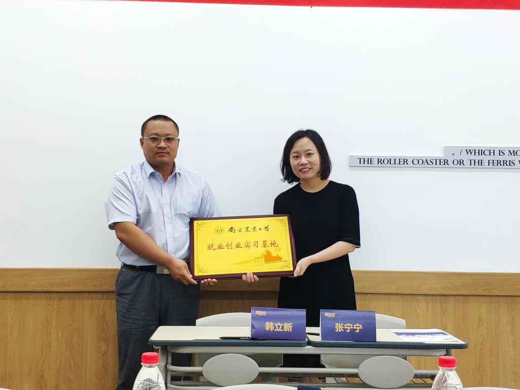 党委副书记韩立新、辅导员甄亚乐、杨瑞萌、部分学生代表,新东方(南京)学校人力资源部总监张宁宁、招聘主管王俊婷、王申参加此次签约授牌仪式并进行座谈交流。