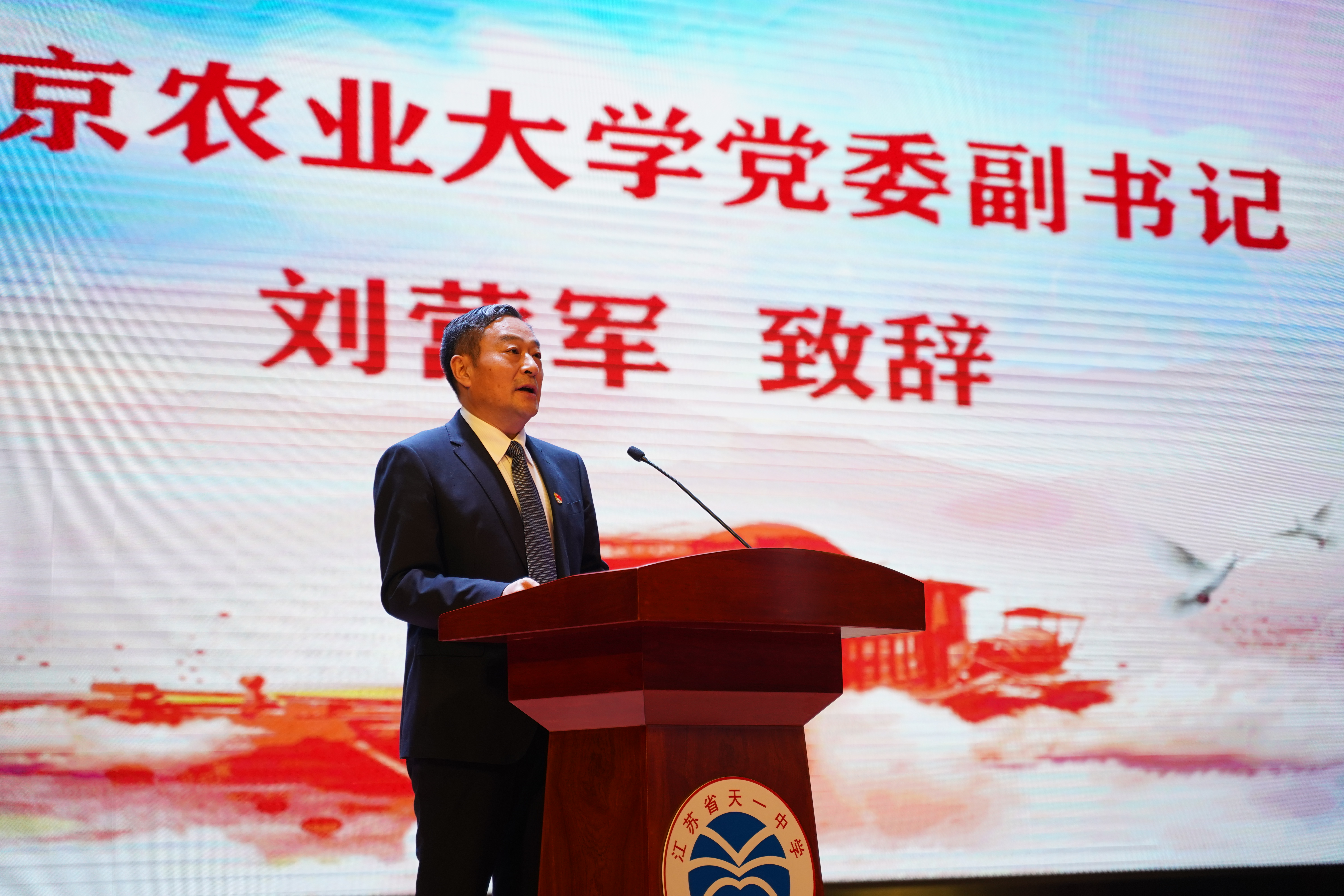 进行了介绍;其次回顾了南京农业大学与江苏省天一中学近年来良好的合作关系;最后希望青年学生可以在党的创建历史中汲取前进的智慧和力量,不负总书记的殷切嘱托,不负青春,不负韶华,在攀登知识高峰中追求卓越,立大志、明大德、成大才、担大任。
