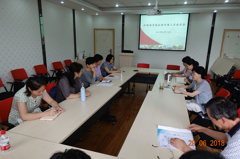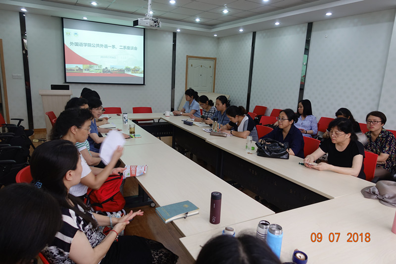 公共外语一系、二系教师座谈会在教学楼A310举行。全体领导班子和公共外语一系和二系老师三十多人参加了座谈会。会议由党委书记韩纪琴主持。