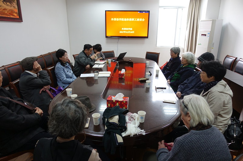 退休教职工座谈会在教学楼E302召开。院党委书记韩纪琴、副书记董红梅和副院长游衣明出席会议,邓昭春等十二位退休老同志参加会议,会议由韩纪琴主持。