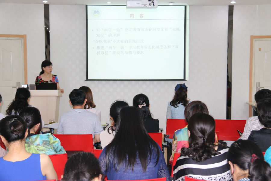 党委在教学楼A310召开了全院教职工党员大会。院党委书记韩纪琴为全体教职工党员上了题为“亮身份树形象做贡献”的专题教育党课。