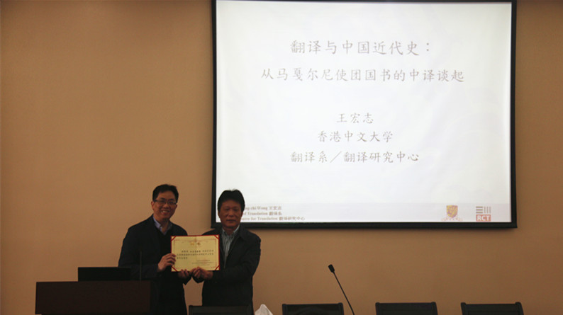在讲座开始前,王银泉代表典籍翻译与海外汉学研究中心向王宏志教授颁发了聘书,聘请他为南京农业大学典籍翻译与海外汉学研究中心学术委员会委员。
