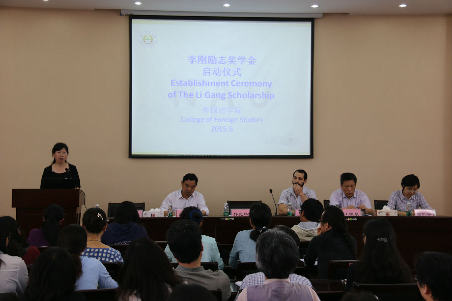 “李刚励志奖学金”启动仪式在教学楼七楼报告厅隆重举行。全体院领导、奖学金发起人美国外教Britton Taubenfeld以及外语院中外教职工、学生党员以及学生代表出席了此次启动仪式。仪式由党委副书记董红梅主持。