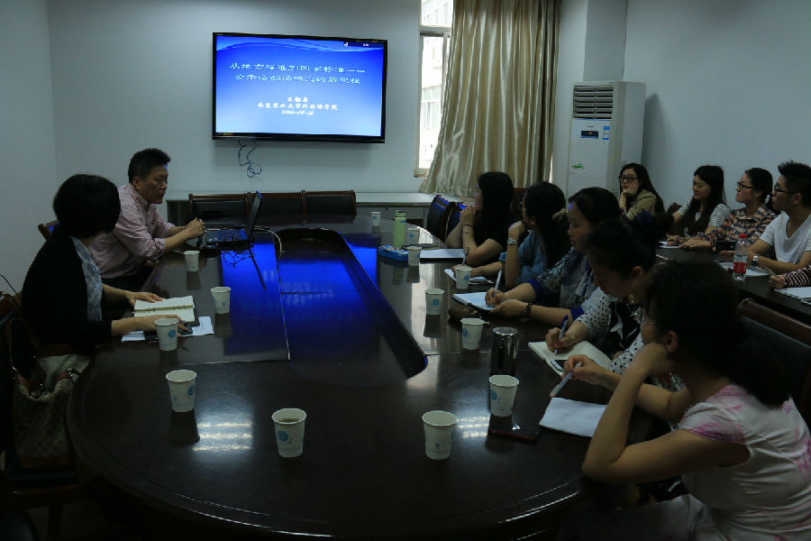 王银泉教授主持的国家语委2015年度科研项目《对外传播战略中的外语服务与南京市国际化语言环境建设研究》召开任务布置工作会议,课题组全体成员、相关研究生和本科生出席,会议由王银泉教授主持。