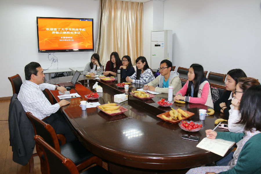 有出国意向的学生进行面对面交流,就“4+1”项目中专业课程设置和项目申报手续以及海外留学注意事项等提供咨询。唐银山详细耐心地解答了同学们提出的问题,并与大家分享了自己在英国留学及工作时发生的趣事,会议气氛十分融洽。本次咨询会为有意向参加“4+1”项目的学生提供了一个交流、获取信息的平台,帮助学生更有效全面地了解该项目及其申报过程,从而保证该项目的顺利进行。