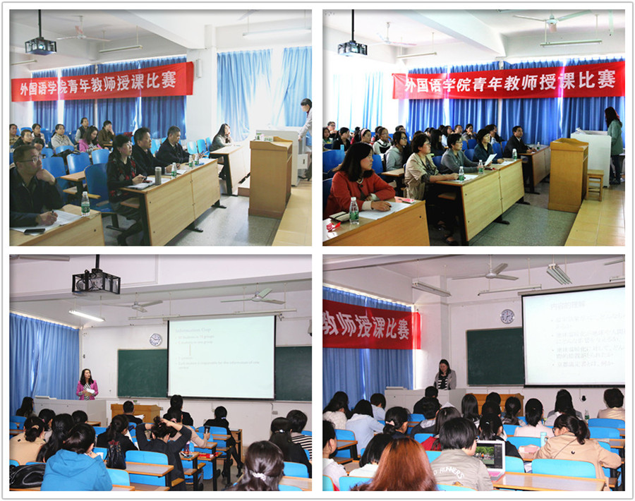 举行了全院青年教师授课竞赛,22名35岁及以下从事英语专业、日语专业和大学公共英语教学的教师参加了比赛。比赛采取说课10分钟的形式进行,分为日语和英语两组进行,参赛人分别从教学目的、预期效果、教学步骤、教学内容、课堂活动设计等方面展开阐述,并就课程的安排和考核等进行了说明我分析。各位老师充分准备,精心设计,授课内容理解和陈述到位,教学重点难点突出,内容丰富多彩,教学活动设计合理,表现出了各自深厚的语言功底和精湛的课堂艺术,展现了各自不同的教学风采。