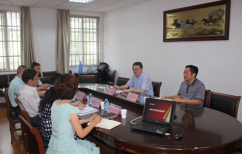 韩纪琴首先介绍了学院的基本情况,从党建与思政工作、学科建设与科学研究、教学与人才培养和学生工作等方面做了详细汇报。随后,汇报了学院发展的主要瓶颈和将来的发展思路。院长秦礼君就学院“凝心聚力”工作氛围打造、学科建设以及人才引进的现状与困惑等方面作了汇报。副院长王宏林、党委副书记姚科艳、教师代表顾飞荣教授结合各自分管工作进行了专题汇报。