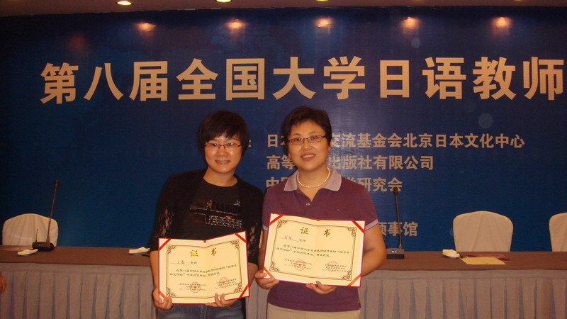 2013年7月21-25日,“第八届全国大学日语教师研修班”在吉林省长春市举行,来自全国各地高校的183名日语专业教师参加。此次研修班由日本国际交流基金会北京日本文化中心主办、高等教育出版社协办、吉林大学承办。研修班聘请了国内外的专家名师,以文章表现为主题,围绕“如何读、如何写、如何教”这一切入点,采用主题报告、分组讨论等形式从多个角度对文章表现进行阐述,并让与会的老师以2—3人为一组,进行教案的具体设计。从教学理念、指导方法、授课的重点难点到具体的授课设计流程和时间分配都要详细缜密地进行策划。比赛从将近80组的教案中选出6组,然后进入现场说课比赛。凭借扎实的语言基本功、缜密的教案策划,成人漫画