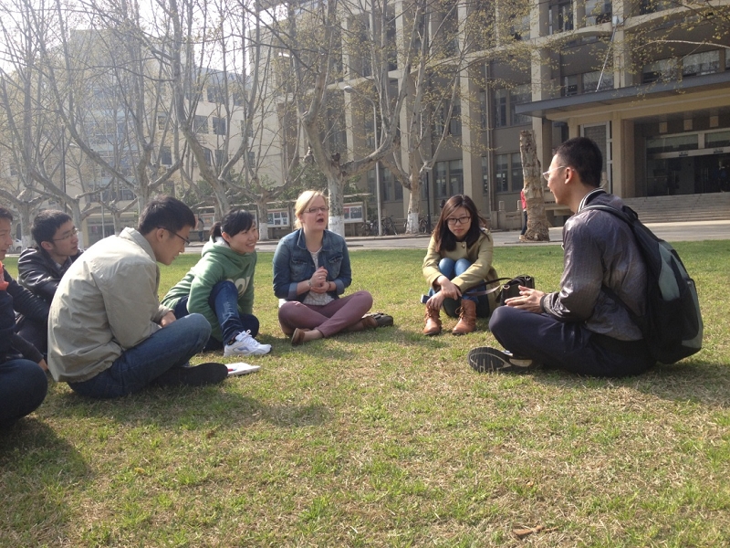 学生开展深度交流。交流主要围绕校园生活、文化差异、学术研究等方面展开。双方同学都十分珍惜此次交流机会,气氛异常活跃,甚至还一起唱起了英文歌曲。有些班级的交流还从课堂延伸到了校园优美的草坪。这是自去年之后成人漫画