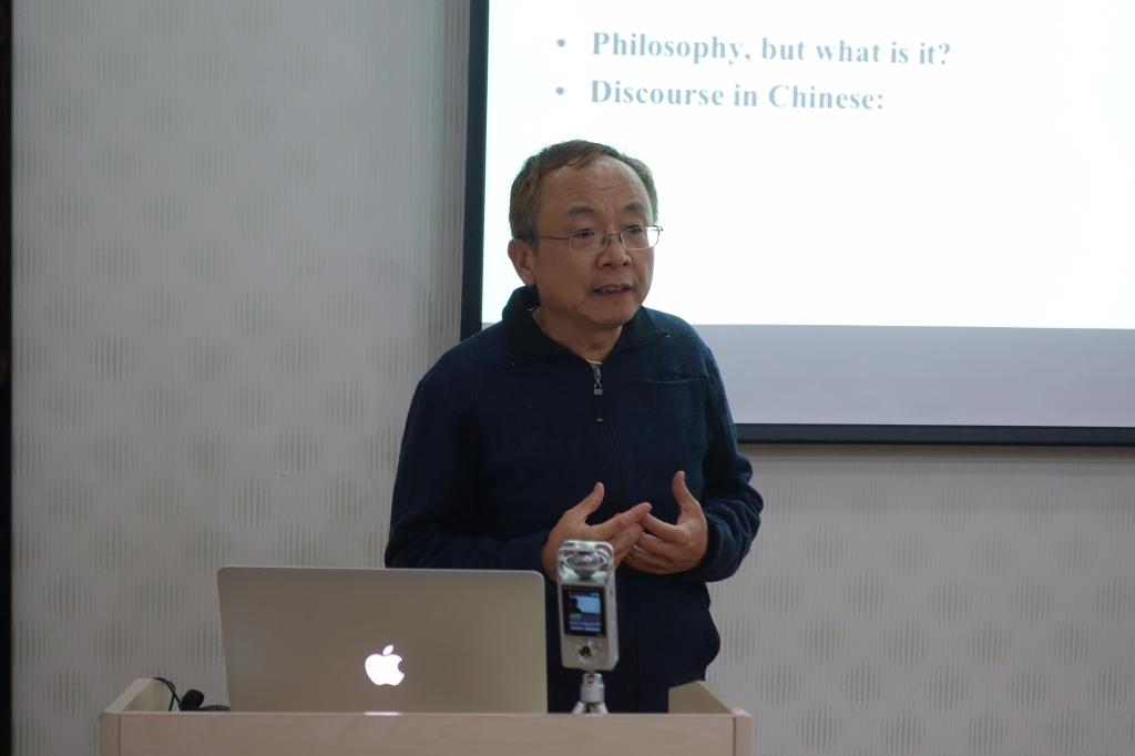 讲座伊始,钟勇博士抛出了一个问题“何为哲学?”(Philosophy, but what is it?),在座老师和学生经过讨论,纷纷提出自己对哲学的理解。随后,钟勇博士从“discourse”一词在中文中的翻译为互动话题,以玄奘、严复等翻译大家为例,在不断地追问和反问中引发大家思考,指出中文越来越名词化的现状。同时,钟勇博士还将discourse的中文翻译与日文翻译进行对比分析,提出中日翻译的较量,关键要看新造词。