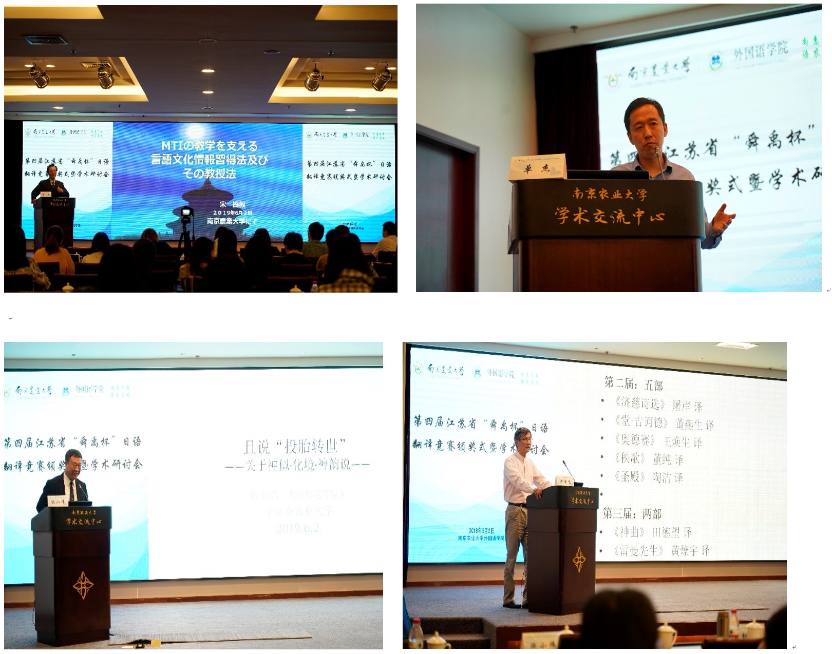 南京农业大学副校长胡锋教授、中国日语教学研究会副会长大连大学原副校长宋协毅教授、江苏省特聘专家南京师范大学林敏洁教授、江苏分会刘克华会长、南京农业大学成人漫画