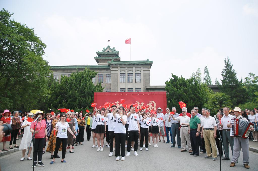 一首《我爱你,中国》为活动拉开序幕,关工委退休教师们以深情合唱表达对祖国的热爱之情。随后,《我们都是追梦人》的旋律响起,学生们汇聚在教师周围,以活力洋溢的舞蹈展现南农外语人的青春气息。《我们的生活充满阳光》合唱后,现场气氛推向高潮,大家汇聚成了心形的队伍,全场齐唱《我和我的祖国》,过往的师生纷纷驻足,跟随音乐挥舞着手中的国旗。音乐结束后,现场响起了经久不息的掌声和欢呼声。