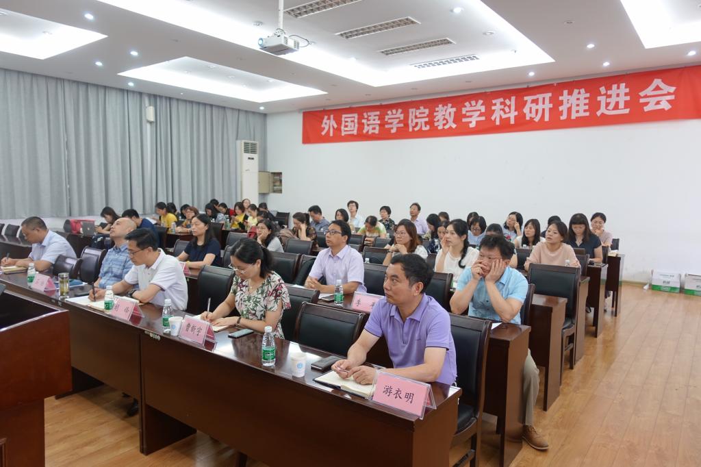 在教学楼七楼报告厅召开了学院教学科研工作推进会。这是继本学期开学之初召开的教学科研启动会之后的又一次重要会议。副校长胡锋出席了会议。学院全体教职工参加了会议。