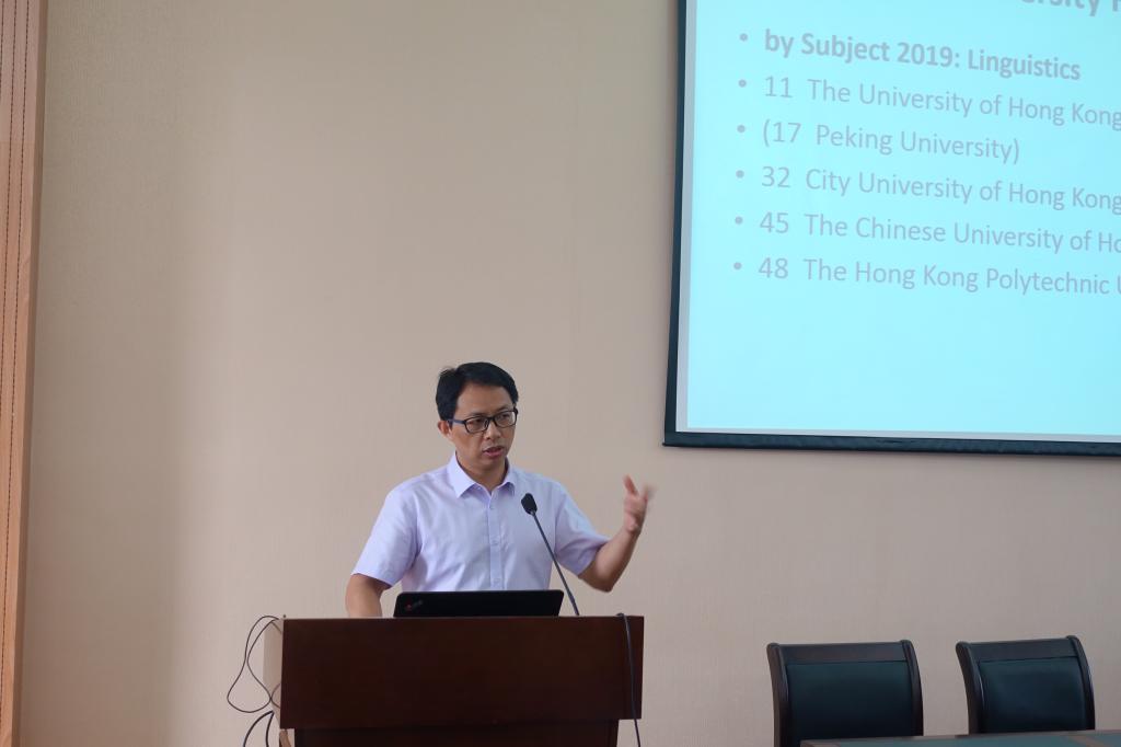 日语学科的优势和劣势以及面临的问题和解决的途径作了详细的分析。裴正薇教授就英语学科硕士点的建设路径及发展前景进行了深入的分析和阐述。英语系主任李平教授结合香港高校语言类专业的发展现状作了专题交流,与大家分享了香港各高校英语学科建设现状与经验。