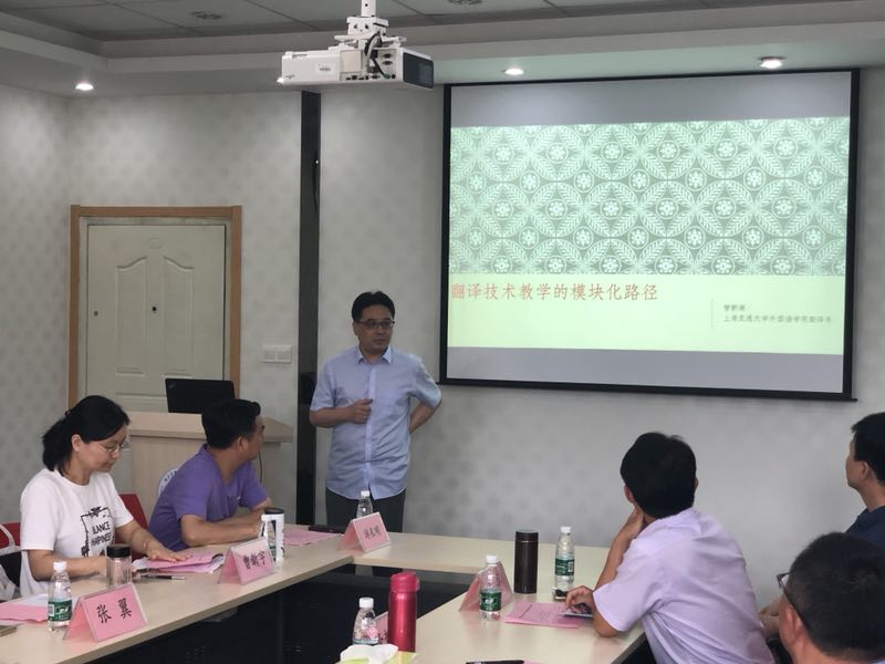 沙龙分主旨报告和院校交流两个环节。其中上海交通大学管新潮教授做了题为“翻译技术教学的模块化路径”的报告。他结合自己的教学和实践经验,将翻译技术教学分为计算机辅助翻译技术、语料库技术、Python编程技术和串联翻译技术教学其他模块的语料库四个模块。浙江大学何文忠教授题为“以出版导向的翻译能力综合培养”的主旨报告介绍了浙江大学翻译与本地化技术实验室的翻译教学改革经验,并对翻译教学的改革思路、培养模式、课程设置等内容做了详细说明。他还重点介绍了以出版为导向、利用图书翻译项目进行翻译教学和翻译人才综合能力培养的经验。