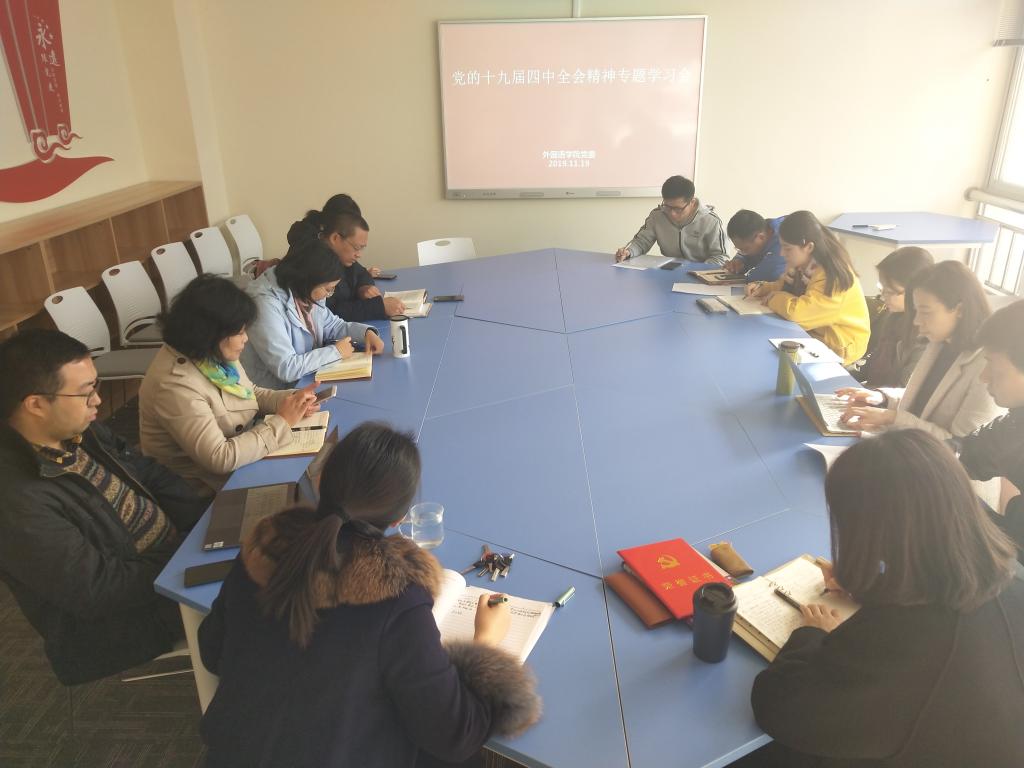 在学院党员活动室召开了专题学习会,认真学习传达党的十九届四中全会精神,紧密结合“不忘初心、牢记使命”主题教育,不断提高学院教学科研和管理服务的能力水平。院党委委员、党支部书记参加了会议。院党委副书记韩立新同志主持会议。