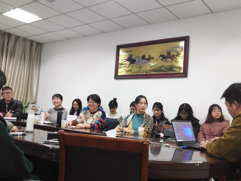 活动开始,主持人李可君介绍了本次学术沙龙的活动背景和流程。随后,2019级学硕王安琪以“关于如何写摘要的心得体会”为题进行了汇报,详细的介绍了如何写中日文全文型摘要及主题型摘要。接着,2018级学硕苏琦惠发表了题为“明译《几何原本》传日的受容及影响研究—当前研究进展—”的研究汇报。随后,2018级翻硕李书辉以“专利文献翻译实践报告”为题进行了汇报,对其就业实习的经验和专利文献翻译心得进行了分享,为2019级翻硕提供了就业实习参考。最后,徐畅发表了题为“德国功能主义目的论指导下《令和元年度食料、农业、农村施策》的翻译实例分析”的研究汇报,为翻硕书写翻译实践报告提供了借鉴意义。每位同学汇报过后,指导老师均对他们提出的问题进行了详细的解答,并提出了针对性的指导意见,参会的研究生们也纷纷举手提问,踊跃发言,展开了热烈的讨论。