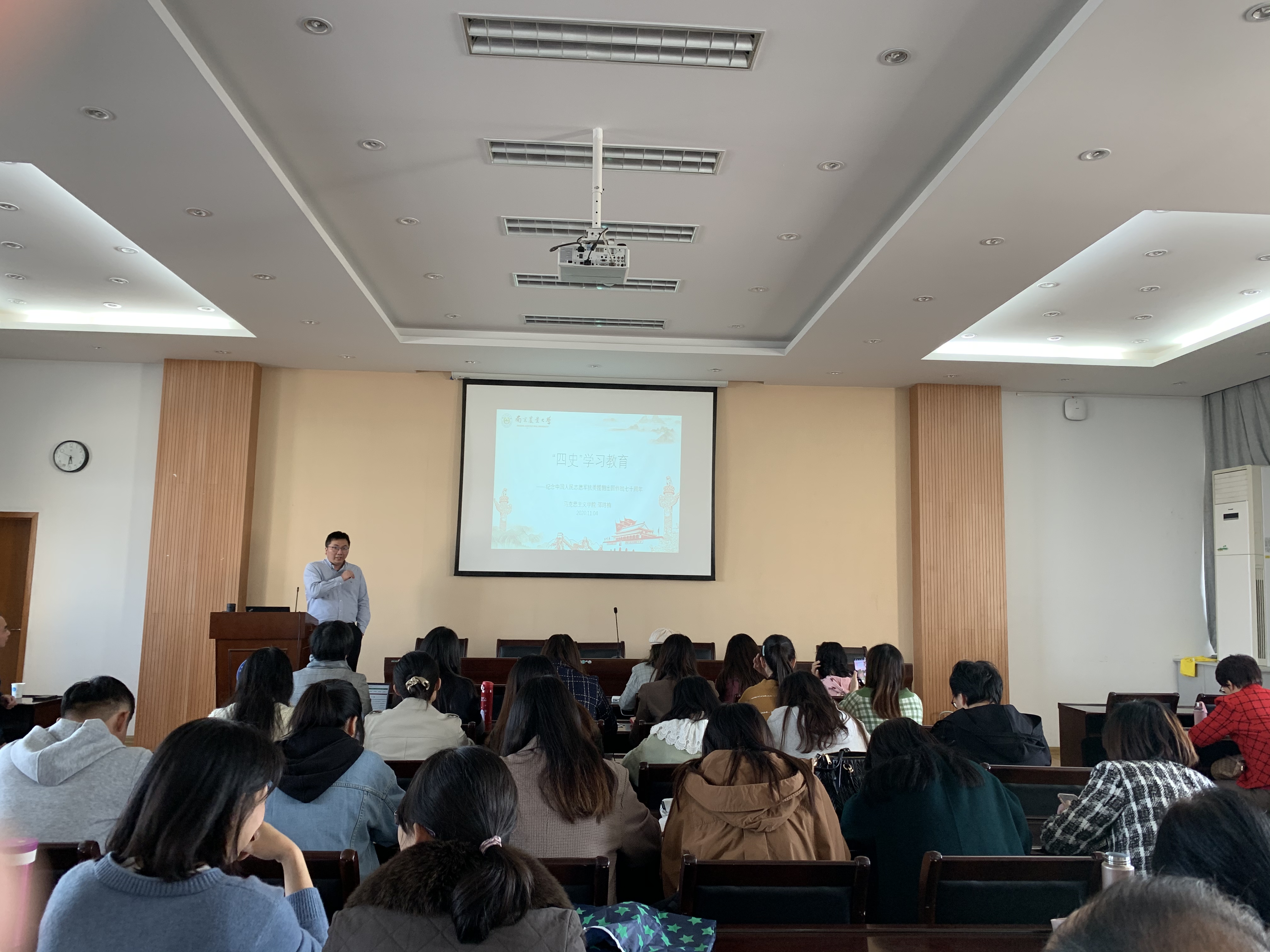 邵玮楠首先从“四史”学习教育出发,详细介绍了党史、新中国史、改革开放史和社会主义发展史的基本内容,指出我们应认真学习“四史”,树立正确的历史观,增强使命意识,凝聚政治认同、历史认同、国家认同和中华民族认同。