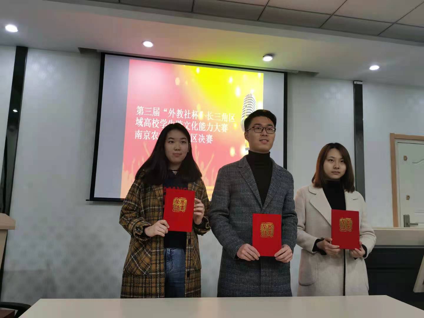 2020年11月22日晚上,第三届“外教社杯”跨文化能力大赛南京农业大学赛区决赛于教学楼A310举行。本次大赛共有12名选手进入决赛,经过激烈角逐,陶冶、孔苏扬、解欣然三名同学获得一等奖,将代表成人漫画