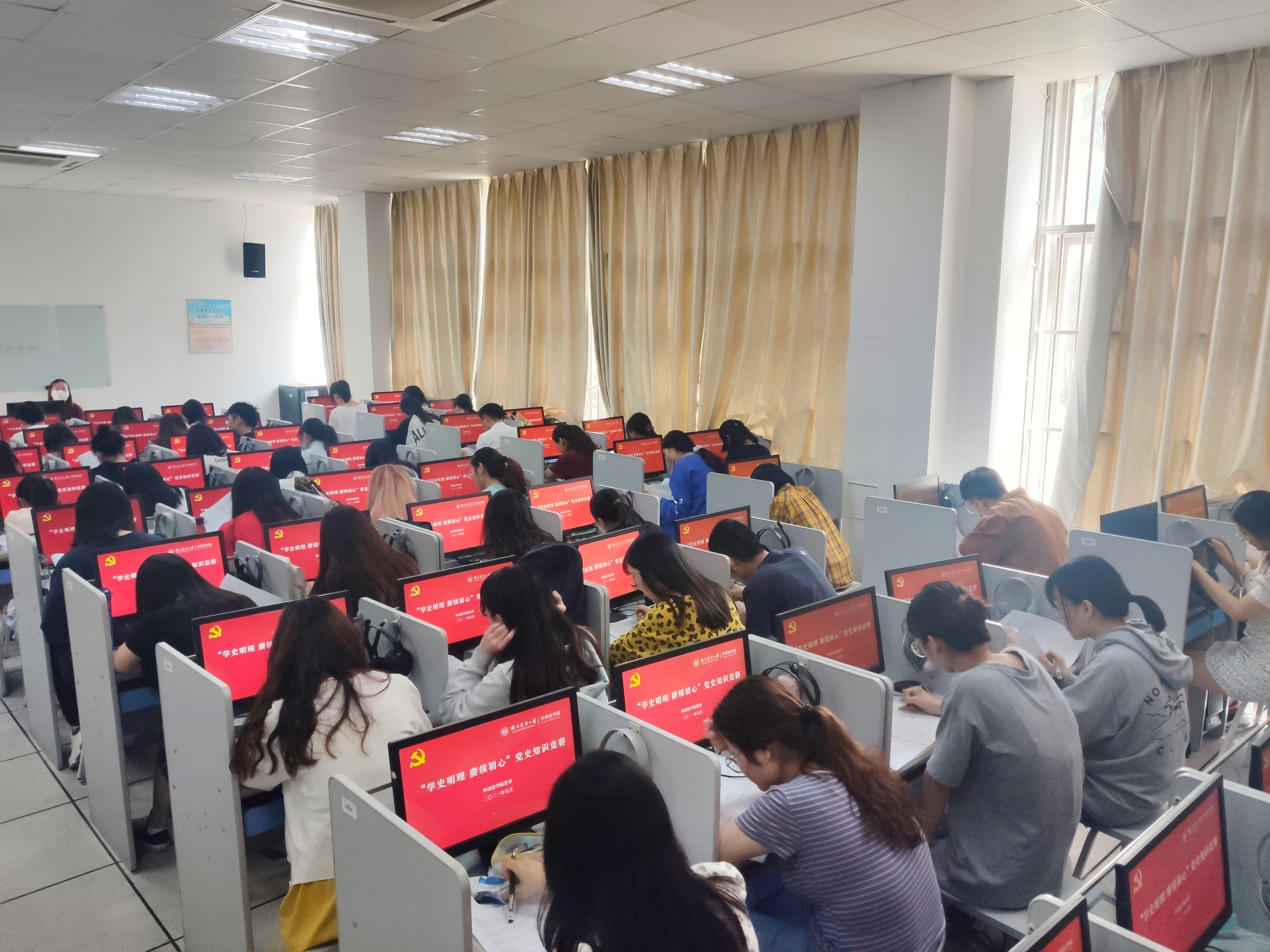 精心组织,师生党员们对竞赛题库进行了认真学习和研讨。竞赛现场,广大师生党员积极参与,认真答题,把党史学深、悟透、做实。