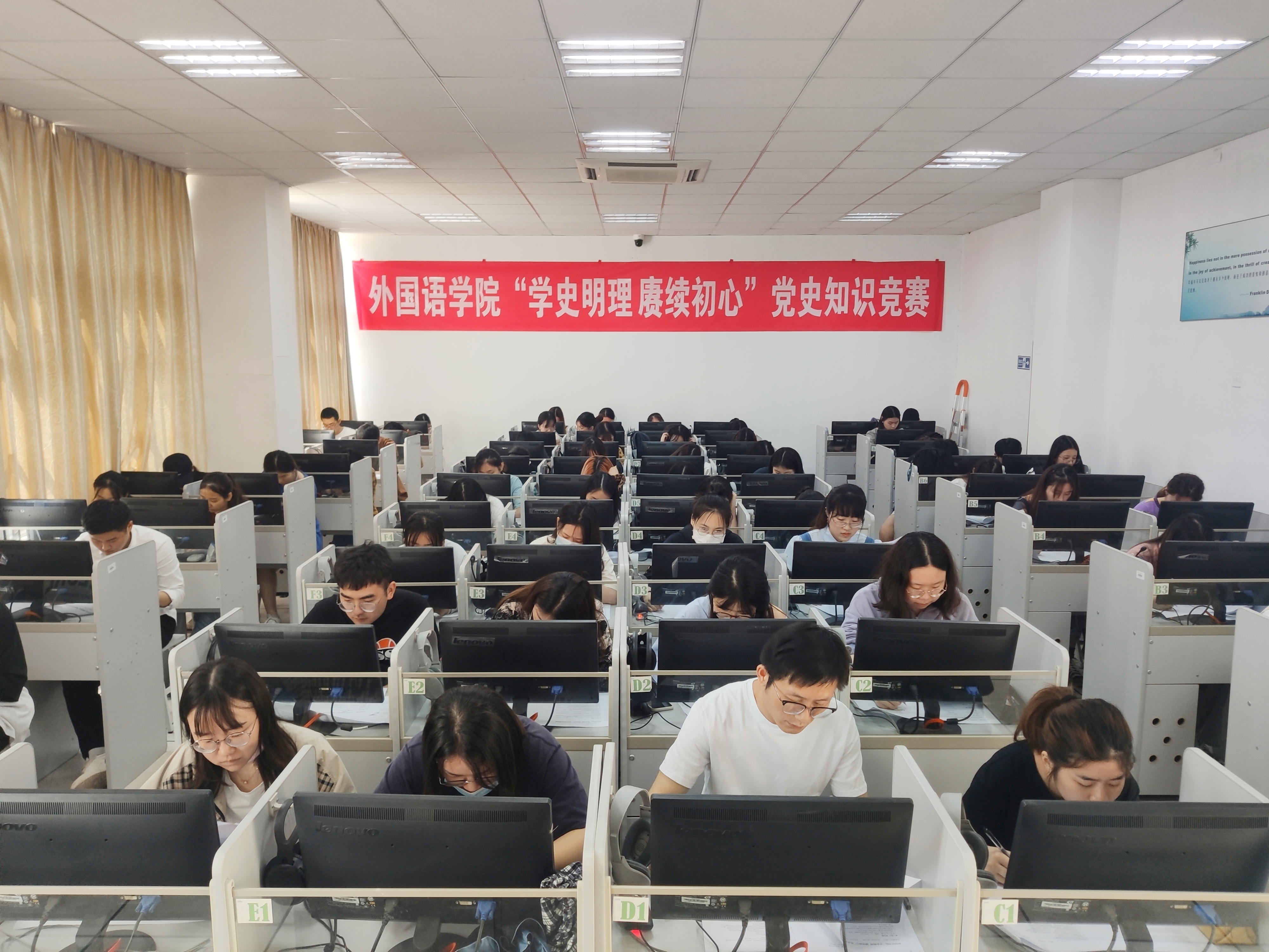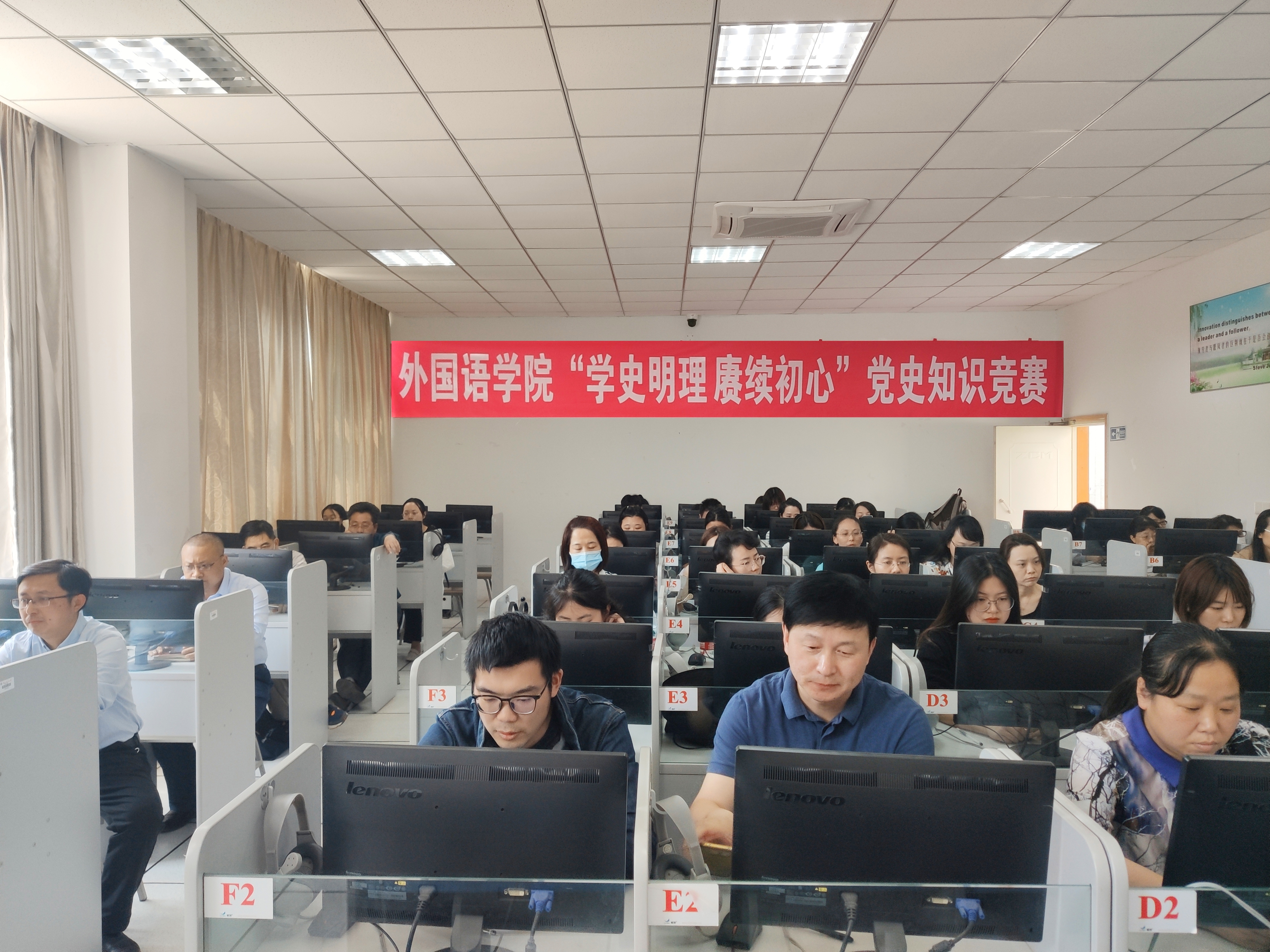 在教学楼举办“学史明理 赓续初心”党史知识竞赛,全体师生党员参加竞赛。