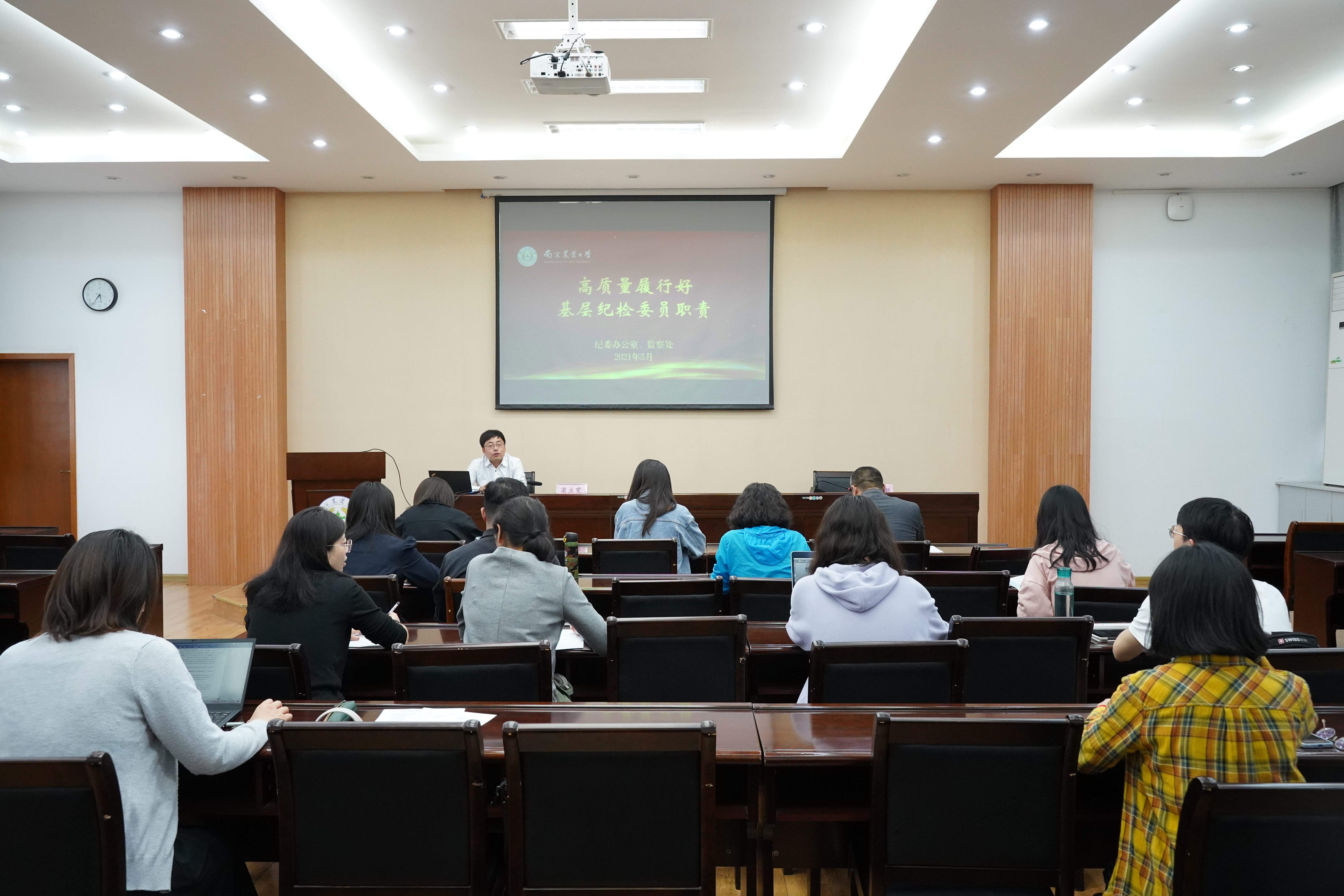 在教学楼七楼报告厅开展了纪检工作专题培训。邀请校纪委办公室副主任、监察处副处长梁立宽来院作专题报告。参加培训的有部分党支部书记、教师党支部纪检委员、学院机关部分工作人员等。培训会由院党委副书记韩立新主持。
