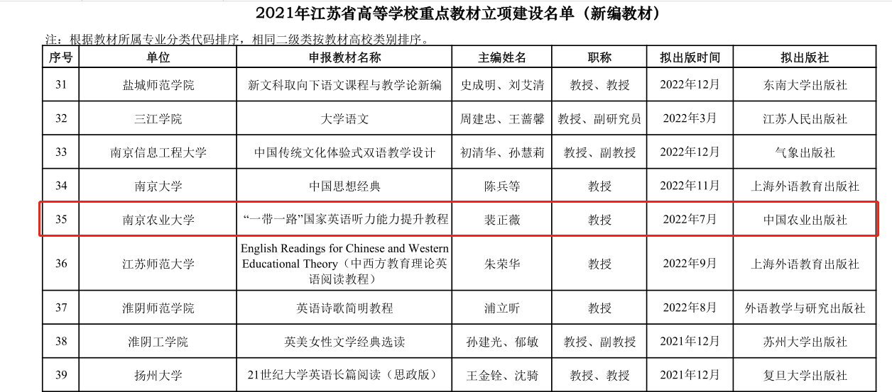 裴正薇教授主编的《“一带一路”国家英语听力能力提升教程》获批立项。