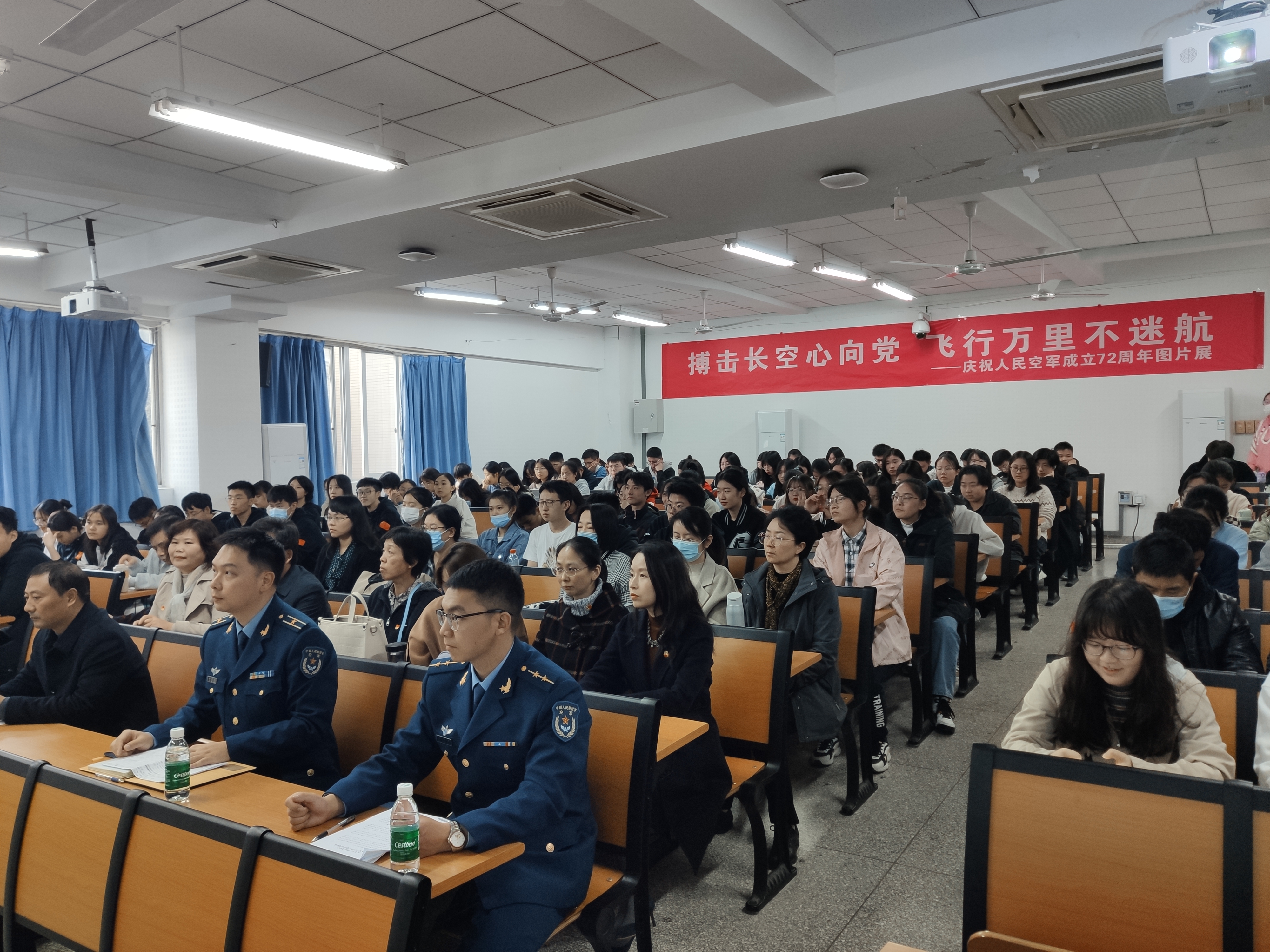 主办的《搏击长空心向党,飞行万里不迷航》—庆祝人民空军成立72周年专题报告会和图片展在卫岗校区举行。来自党委宣传部、校保卫处、成人漫画