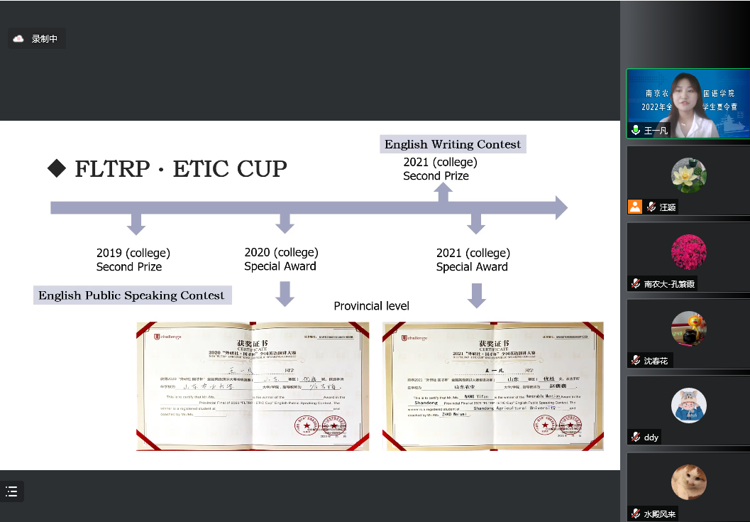 举行了夏令营闭营仪式。裴正薇宣读了优秀营员名单。八位营员代表作了发言,回顾了此次夏令营活动,交流了个人的感悟和思考,对学院提供学习交流平台表达了感谢。裴正薇在本次夏令营活动总结致辞中肯定了各位营员的综合实力,向所有营员表示祝贺,并激励大家始终保持团结友爱、求知进取、奋发有为的精神风貌。最后,她向各位同学发出邀请,欢迎大家选择美丽的南农校园深造学习。夏令营闭营仪式由副院长游衣明主持。