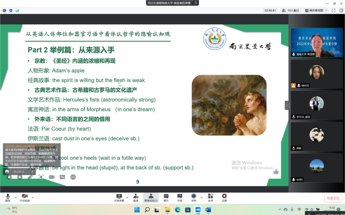 7月4日上午,全体院领导、部分研究生导师出席开营仪式。院长裴正薇向同学们全面介绍了学校和学院的基本情况,重点围绕历史沿革、师资力量、学科科研、人才培养、专业优势、社会服务、国际交流、就业去向等方面详细介绍了学院的情况,并通过三段学校和学院的宣传片让各位营员对南京农业大学及成人漫画