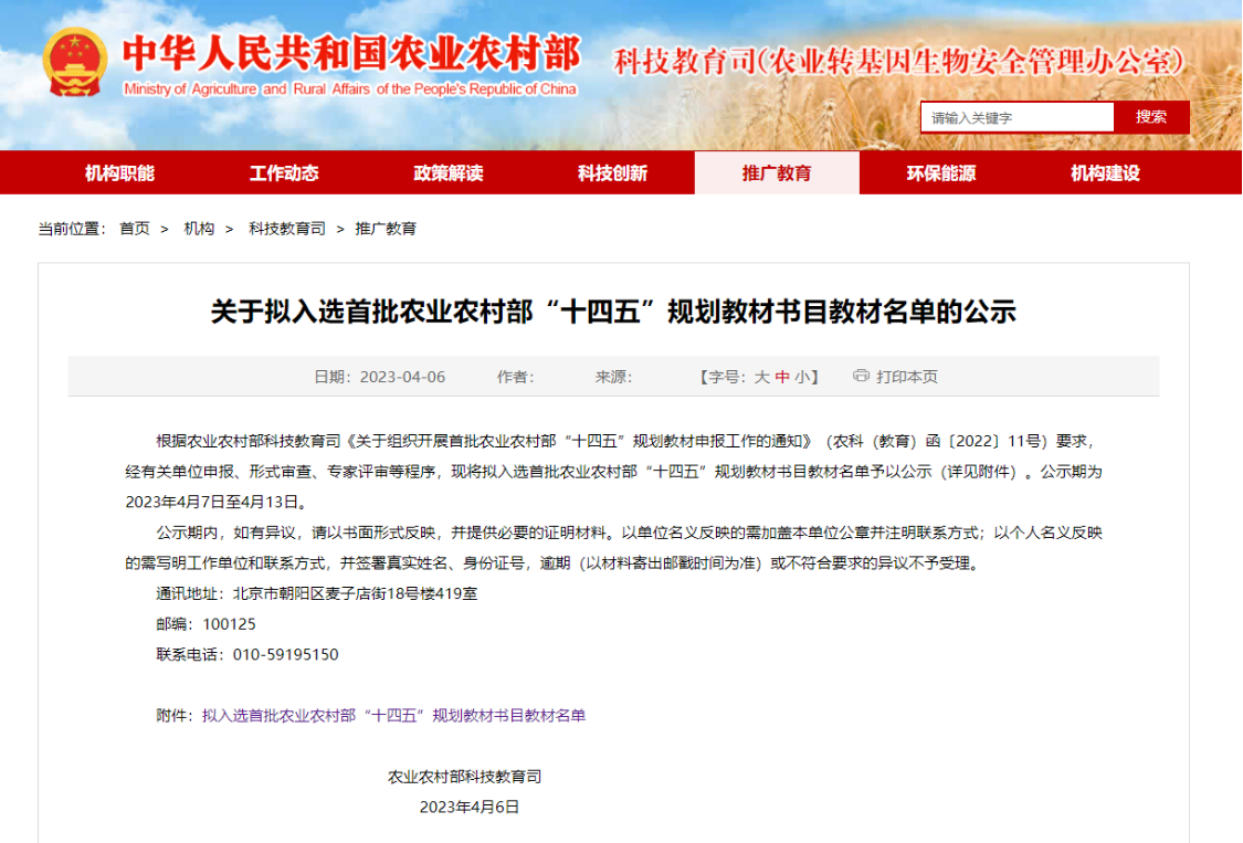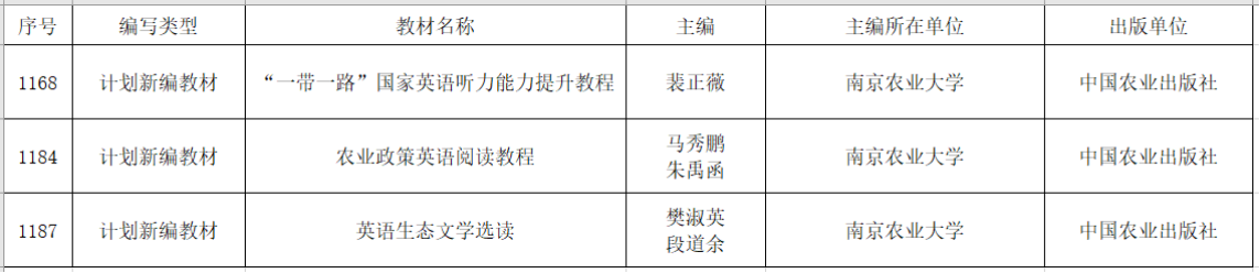 近日,农业农村部科技教育司公布了《关于拟入选首批农业农村部“十四五”规划教材书目教材名单的公示》,成人漫画 教师团队主编的《“一带一路”国家英语听力能力提升教程》、《农业政策英语阅读教程》、《英语生态文学选读》等3部教材入选。
