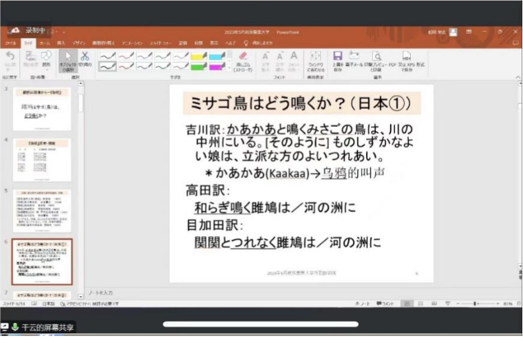 师生开展了一场题为《中日文化翻译40年——从<语言与社会生活>到<诗经><宋词选>》的线上讲座。讲座由学院日语系主任卢冬丽副教授主持,来自校内外约130位师生参加了本次讲座。
