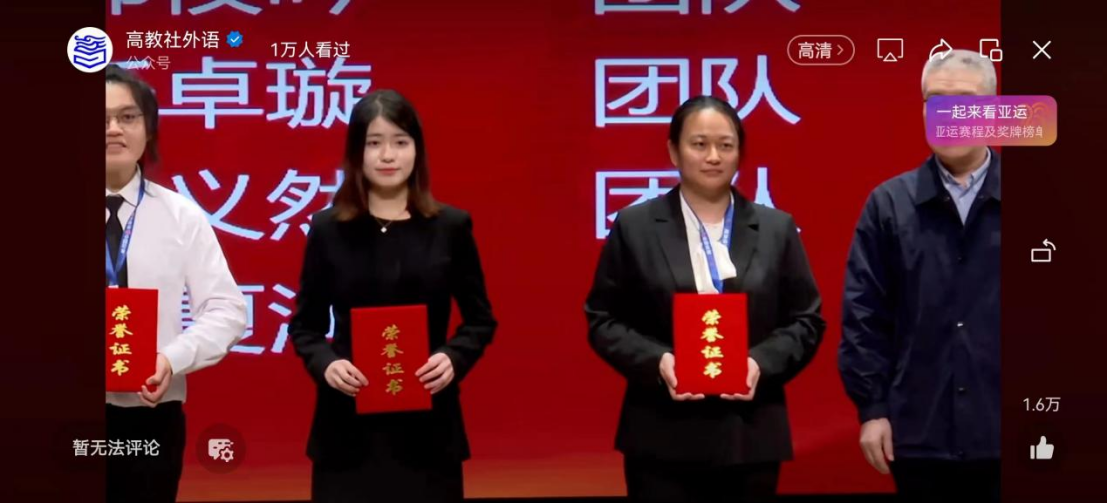 本科生任卓璇、厉淑涵、伍佳怡、史新纪和经济管理学院本科生张力权、刘智婷合作完成的《织锦人生》(Weaving Life of Nanjing Brocade)斩获全国特等奖,创造了江苏省高校选手在此次活动中的最佳成绩。