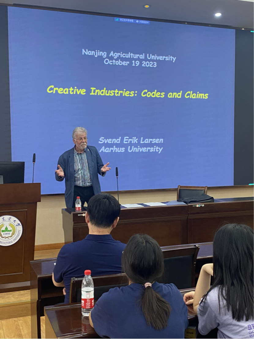 拉森从20世纪40年代之后西方开始兴起的文化产业讲起,介绍了文创产业(Cultural and Creative Industries,简写为CCI)的迅速发展,覆盖的生活层面,不同的表现形式和产品特色。软件、硬件或创新产业的任何其他物品,不论以何种形式与媒介出现,都因其创新的特性而难以即刻识别。用户通常需要借助“桌面”、“路径”等比喻用语,才能破解代码,使用创新产品。拉森结合自己的用户使用体验,生动形象地例证了文创产业给后工业生活方式带来的巨大改变。产品应用要求一种学习过程来获取必要的技术,从而应用、评价、改写、调整这些创新产品。讲座描述了现代创新产业几乎都涉及的四种读写能力——视觉、数码、社会、文化能力。创新产业的产品在被传播和市场化之前,产生的个人、文化以及社会效应通常模棱两可。拉森呼吁国际立法,对产业巨头的信息处理权限加以约束,鼓励年轻一代掌握先进的技术,投身文创产业,通过教育、科研、工业、商业、艺术与文化(ERIBA)的途径,实现更多的合作,重建产业伦理。