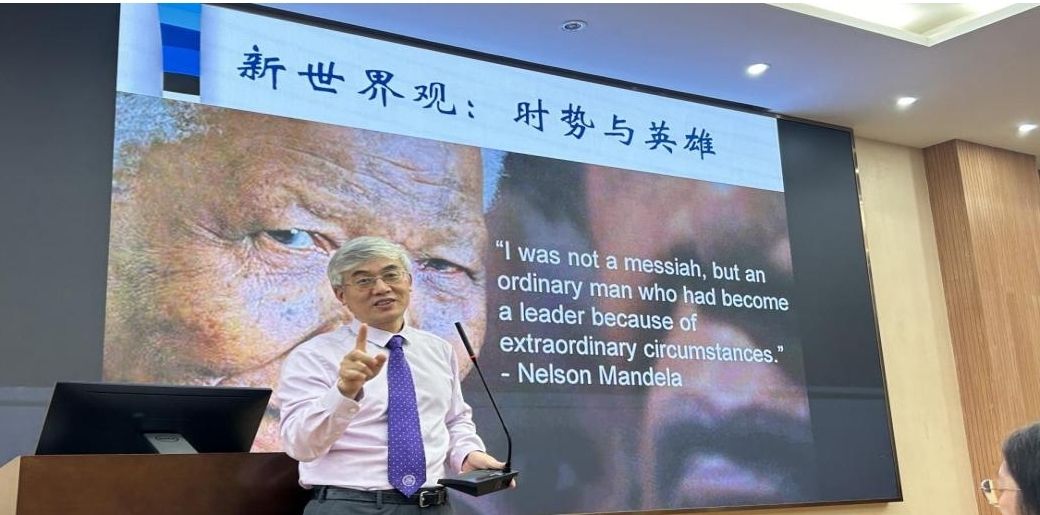 随后,赵白生介绍了区域国别研究的新方法——全球整合法和新世界观法,并以《尼雷尔传论:非洲领袖跨文化研究》和《漫漫自由路》(曼德拉自传)为例进行了详细阐述。赵教授特别强调了后者,通过书中表达的价值观、人生观和世界观,深入剖析了“南非国父”曼德拉的人格魅力和伟大领袖精神。