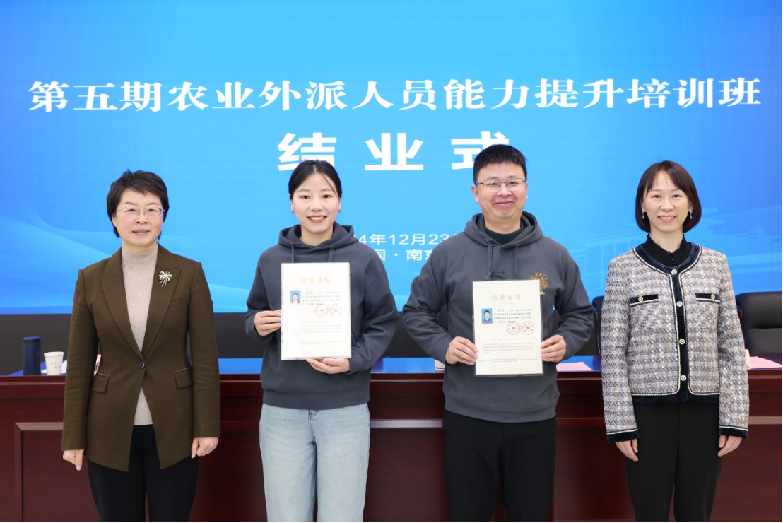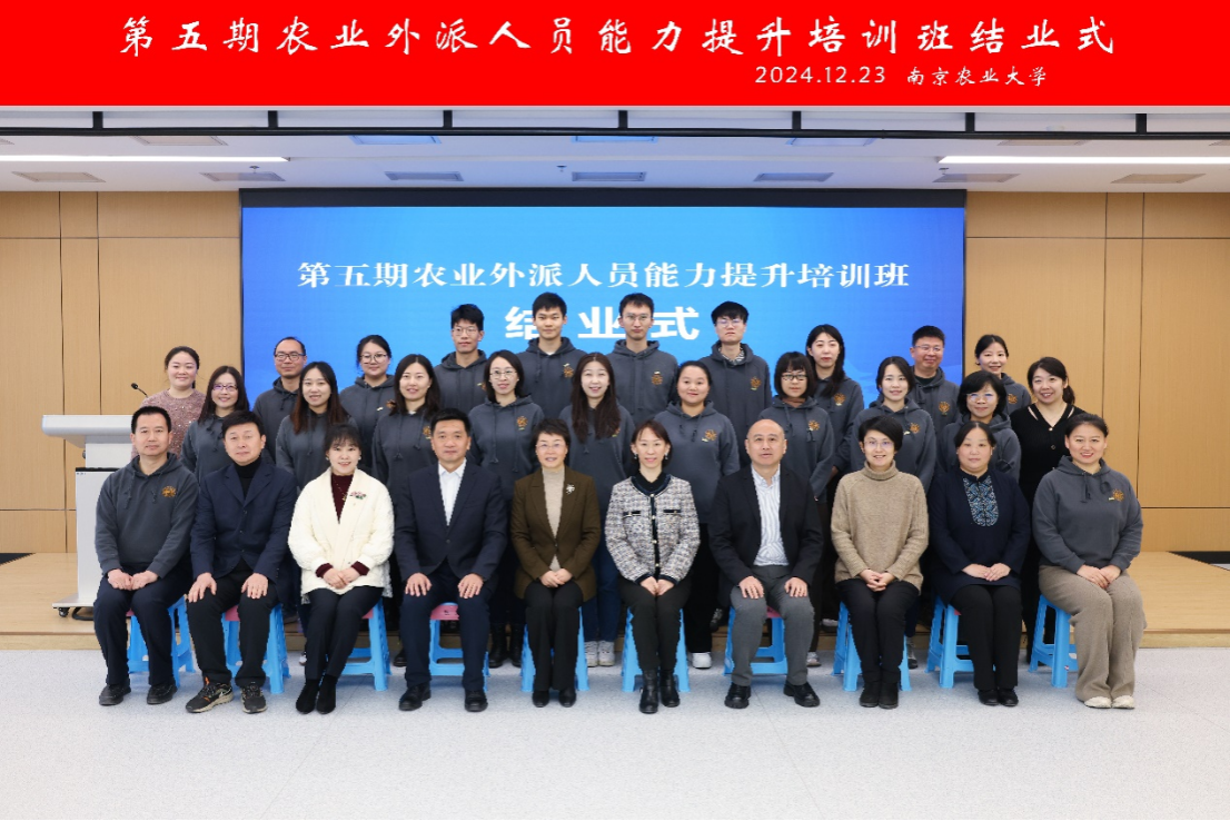 12月23日,第五期农业外派人员能力提升培训班结业式在南京农业大学滨江校区举行。南京农业大学副校长朱艳出席结业式并讲话。农业农村部国际合作司外事人才工作处处长王菁参加结业式,结业式由国际合作与交流处处长、国际教育学院(密西根学院)院长石松主持。