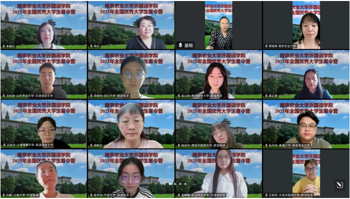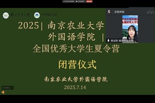 学术考核结束后,樊淑英副教授主持了线上闭营仪式。副院长童敏公布了优秀营员名单,优秀营员代表依次发言,分享感悟与收获,展现出扎实的语言功底与学术潜力。童敏在总结发言中向优秀营员表示热烈祝贺,充分肯定营员们的出色表现,寄语学子锐意进取,发挥语言特长,为促进中外文化交流互鉴贡献力量,并欢迎同学们选择美丽的南农校园继续深造。