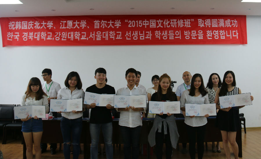2015年7月22日下午两点,韩国庆北大学、首尔大学、江原大学“2015暑期研修班”结业典礼暨中韩学生联欢会在教学楼七楼报告厅举行。国际教育学院院长刘志民,成人漫画