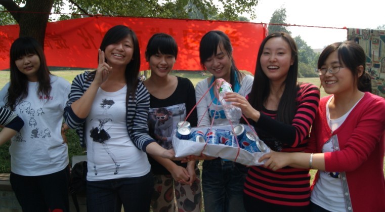 休息过后,学生干部们开展了一系列素质拓展训练项目,如“齐心协力”、“无敌风火轮”、“地雷阵”等,均是考验团队协作能力的游戏项目。大家玩得不亦乐乎,也顺利完成了项目要求的游戏任务。其中,“齐心协力”要求各队用白纸、塑料绳、空塑料瓶制作出能承载十听可乐的容器,学生干部们运用智慧在规定时间内制作一个又一个别出心裁的设计,均能承载起十听可乐,有的设计更是绰绰有余。 下午三时许,同学们恋恋不舍地离开了下马坊公园。正如兼职辅导员刘素惠所说“我们没留下垃圾和个人财产,但留下了美好且难忘的回忆”。通过本次素质拓展训练,学生干部们加深了对十朝古都南京历史文化的了解,更重要的是加强了学生干部间的相互了解和团队协作能力,为新一届学生干部工作的顺利开展打下了坚实的基础。