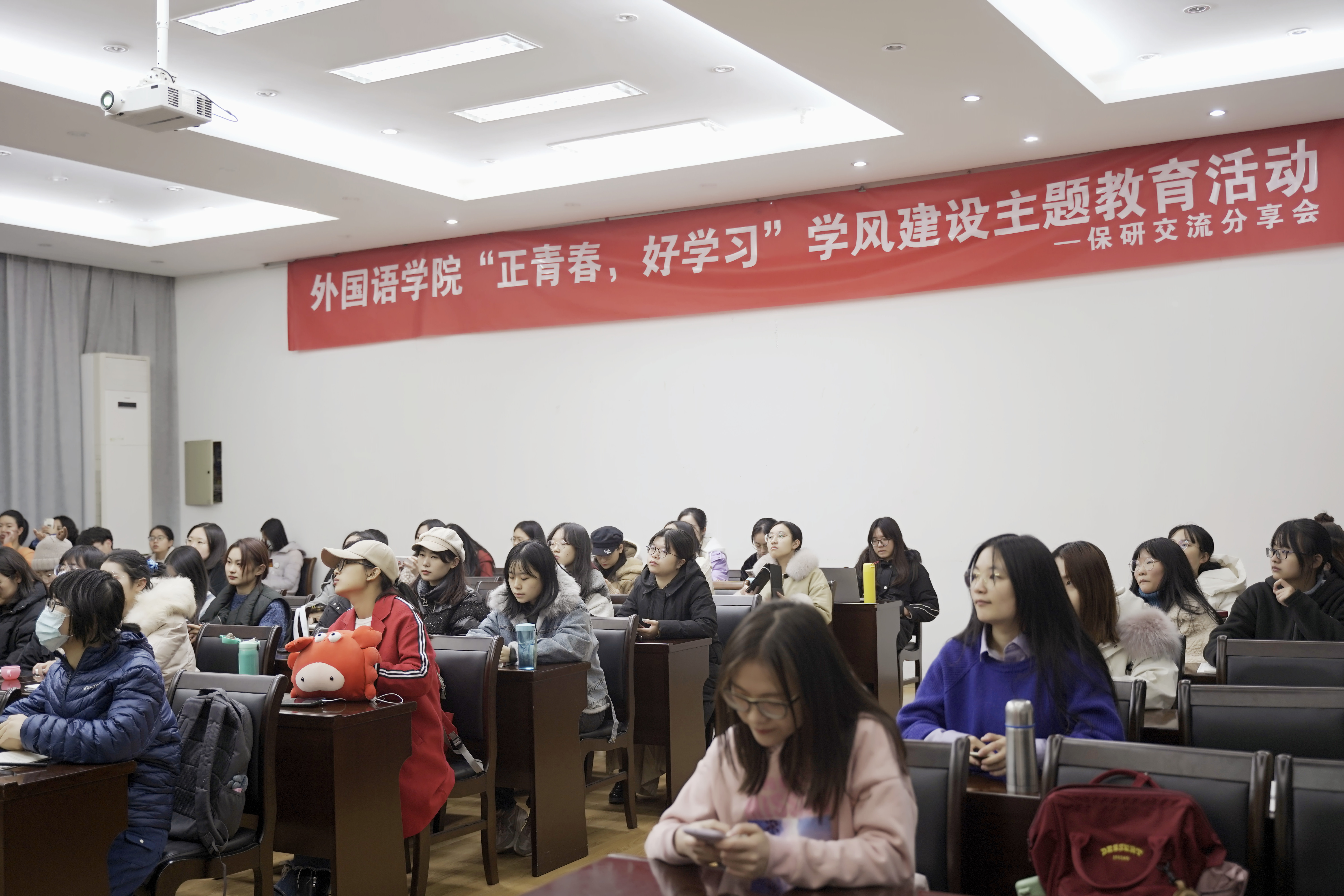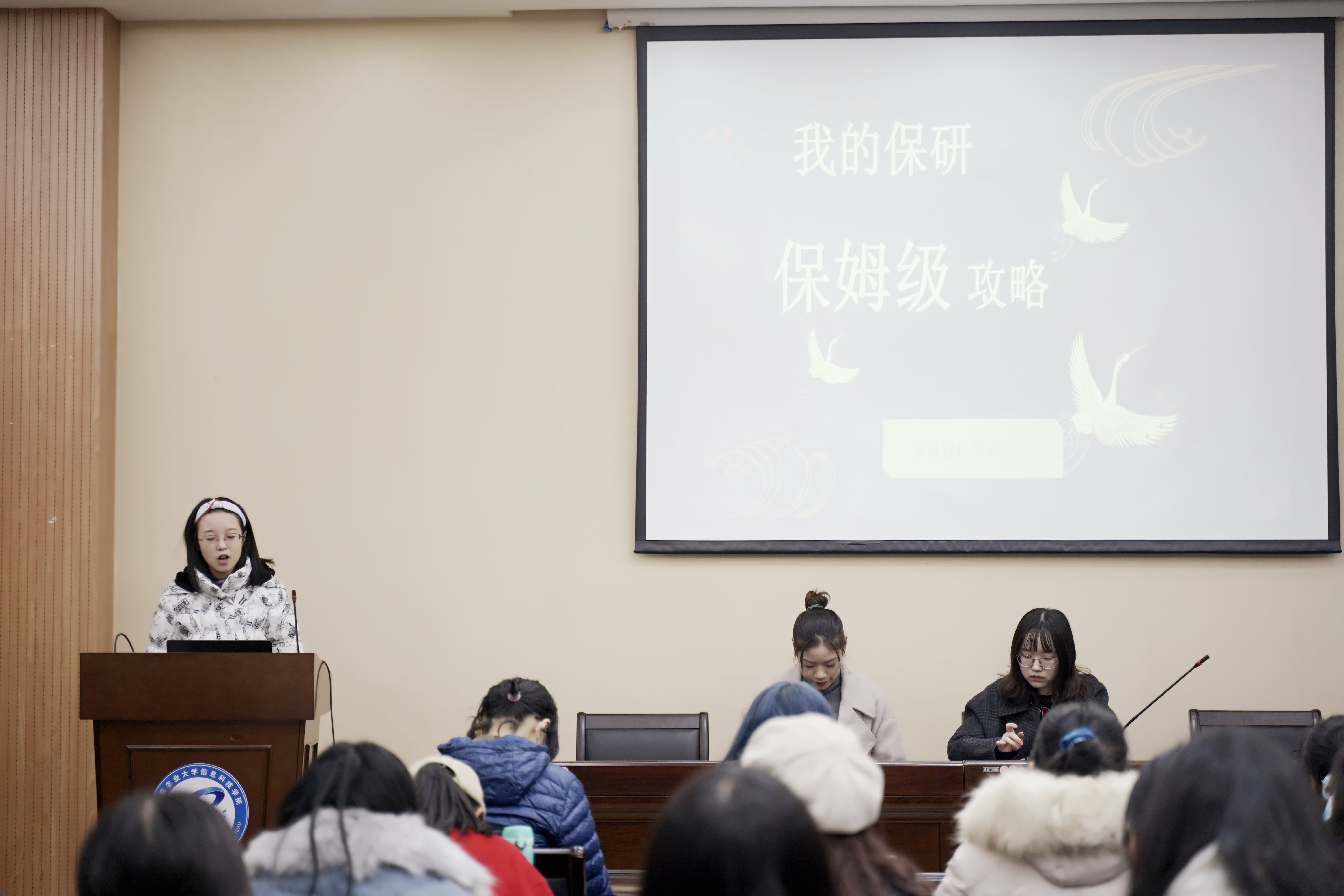 吉雪萌和裴杨阐述了学习成绩和必修课在推免中的基础性。吉雪萌在明确目标、分割任务、脚踏实地和细心耐心四个方面提出建议。裴杨详细地讲解了英语专业的深造方向和学习要点,从出国交流的角度介绍了出国交流学习的利弊及交流机会,从学生工作、社会实践和院校投递的角度,详细地介绍了前期准备材料和考前准备。